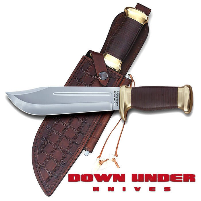 Dieses Modell ist lange gereift, sollte es doch der perfekte Begleiter in Form des leicht verkleinerten Flaggschiffs The Outback werden. Das Walkabout vereint alle Stärken und die Balance des größeren Bruders in einem leichteren, komfortablerem Format. Damit wird der tägliche Umgang mit dem Messer erleichtert. Die Freunde des Originals fühlen sich mit diesem Messer sofort heimisch, besitzt es doch den gleichen Ledergriff mit den massiven Messingmonturen und eine Klinge aus rostfreiem 440C-Stahl gleicher klassischer Formgebung. Auch die Scheide ist in dem beliebten Krokodilhaut-Design gefertigt wie bei dem Modell Outback.